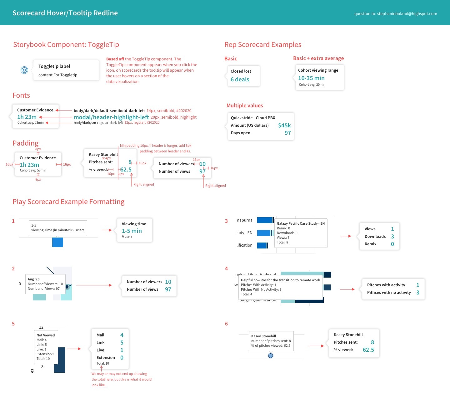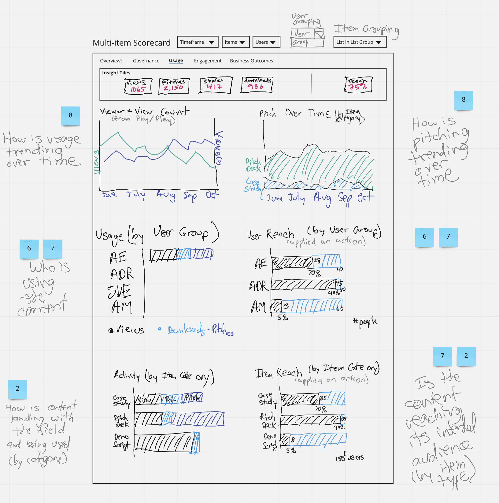 I collaborated closely with engineers to create a MVP for our first scorecard, the Highspot Content Scorecard, which we used to test our assumptions. Based on user feedback we iterated on this scorecard and used these findings to build our next three scorecards.